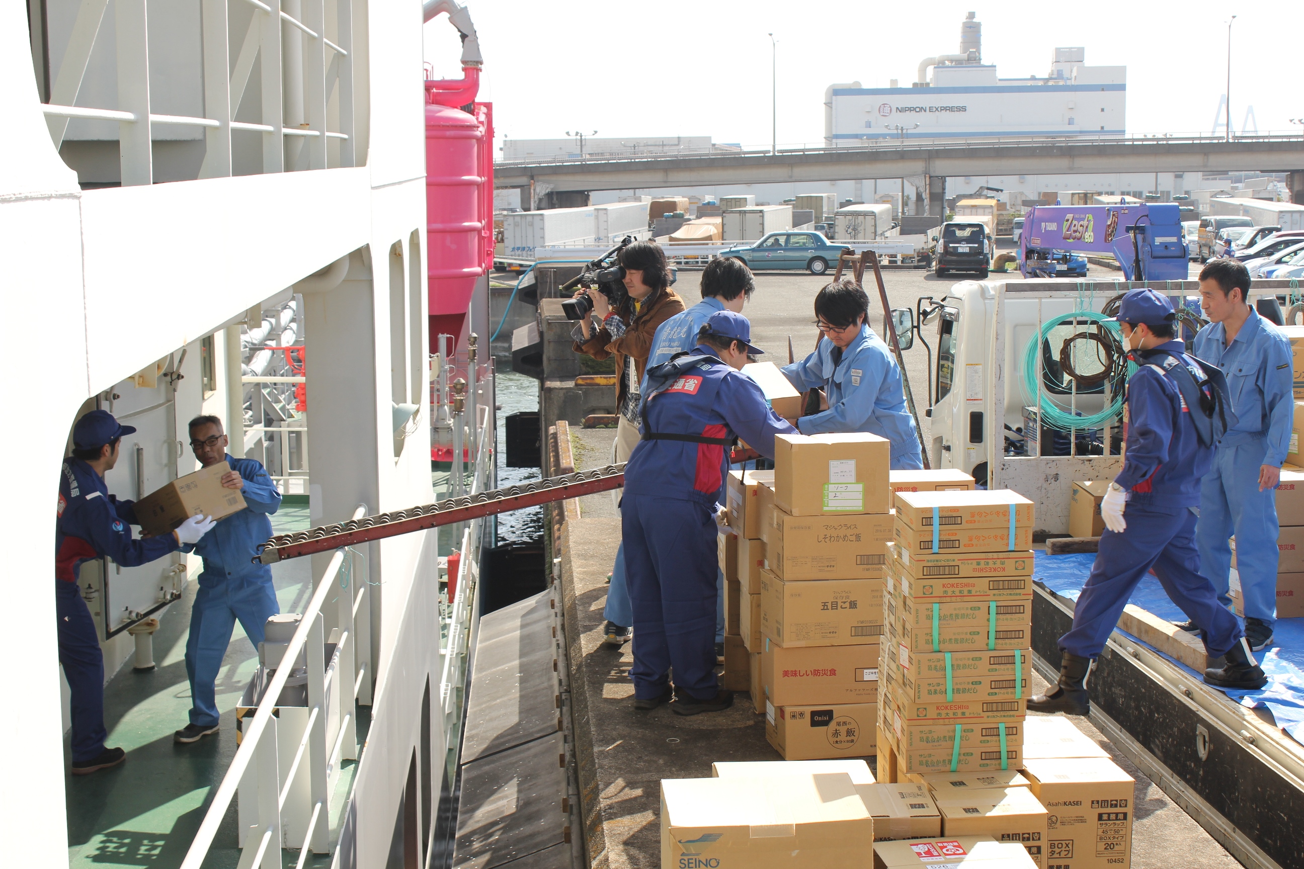 名古屋港 支援物資積込及び出港