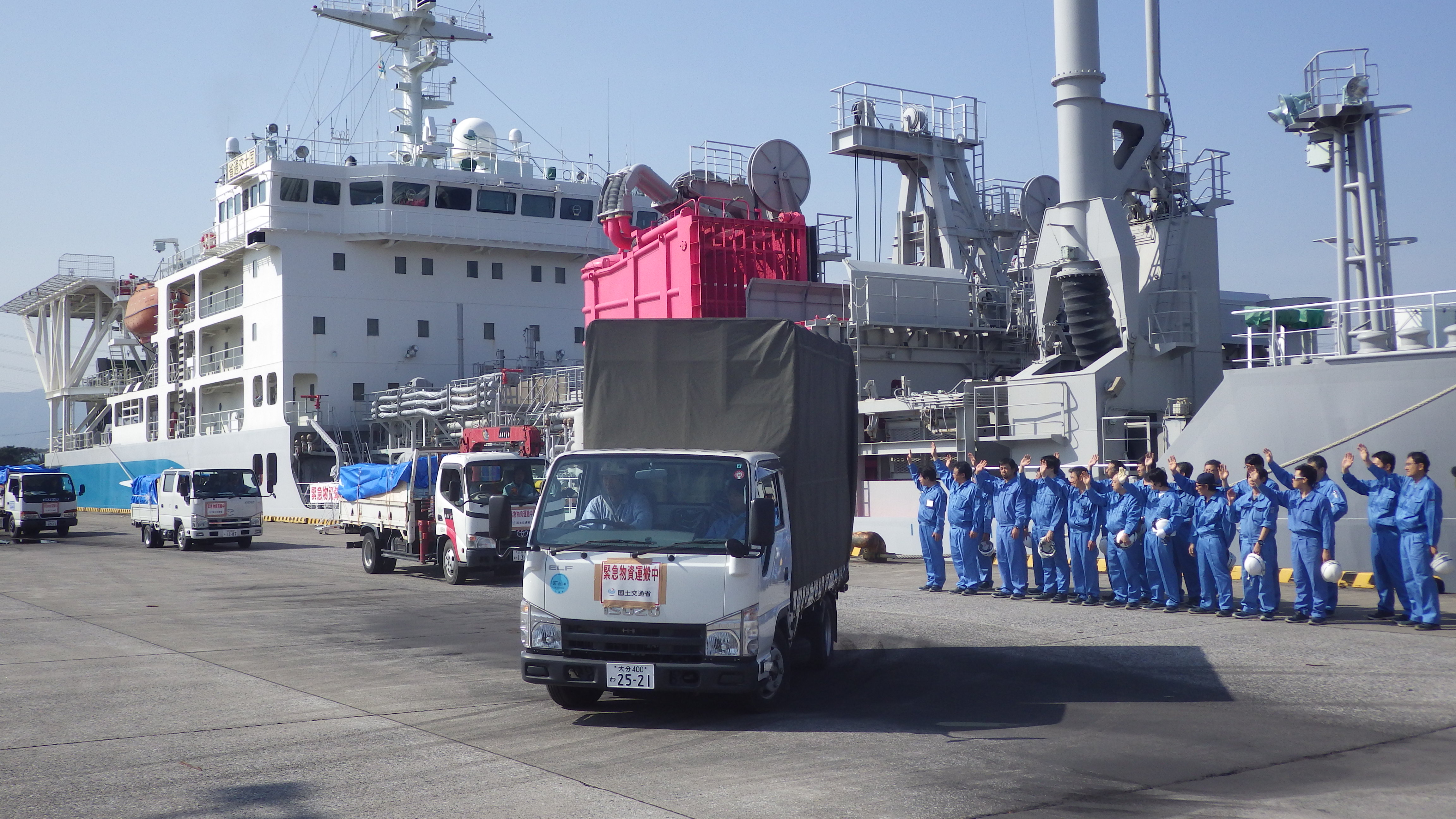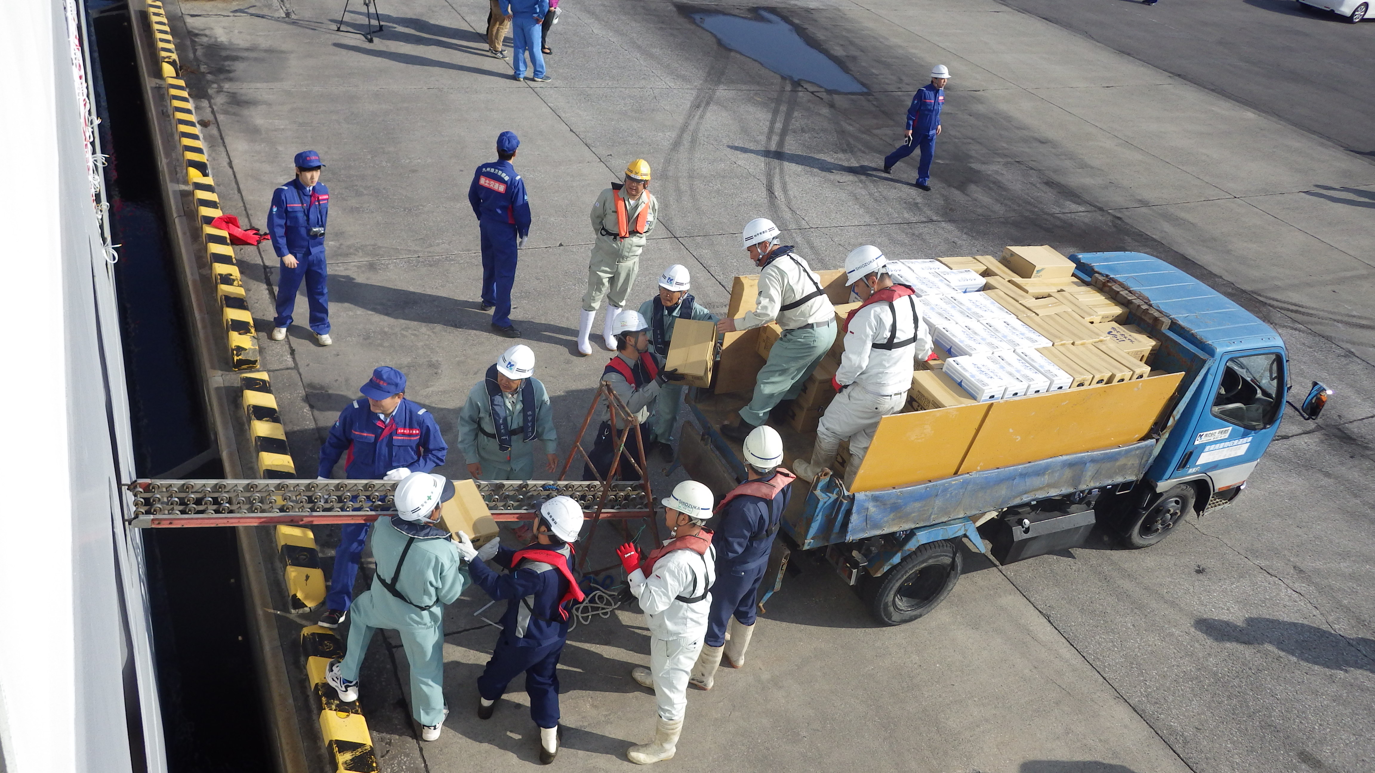 【大分港(大分県)到着 支援物資荷下ろし】
