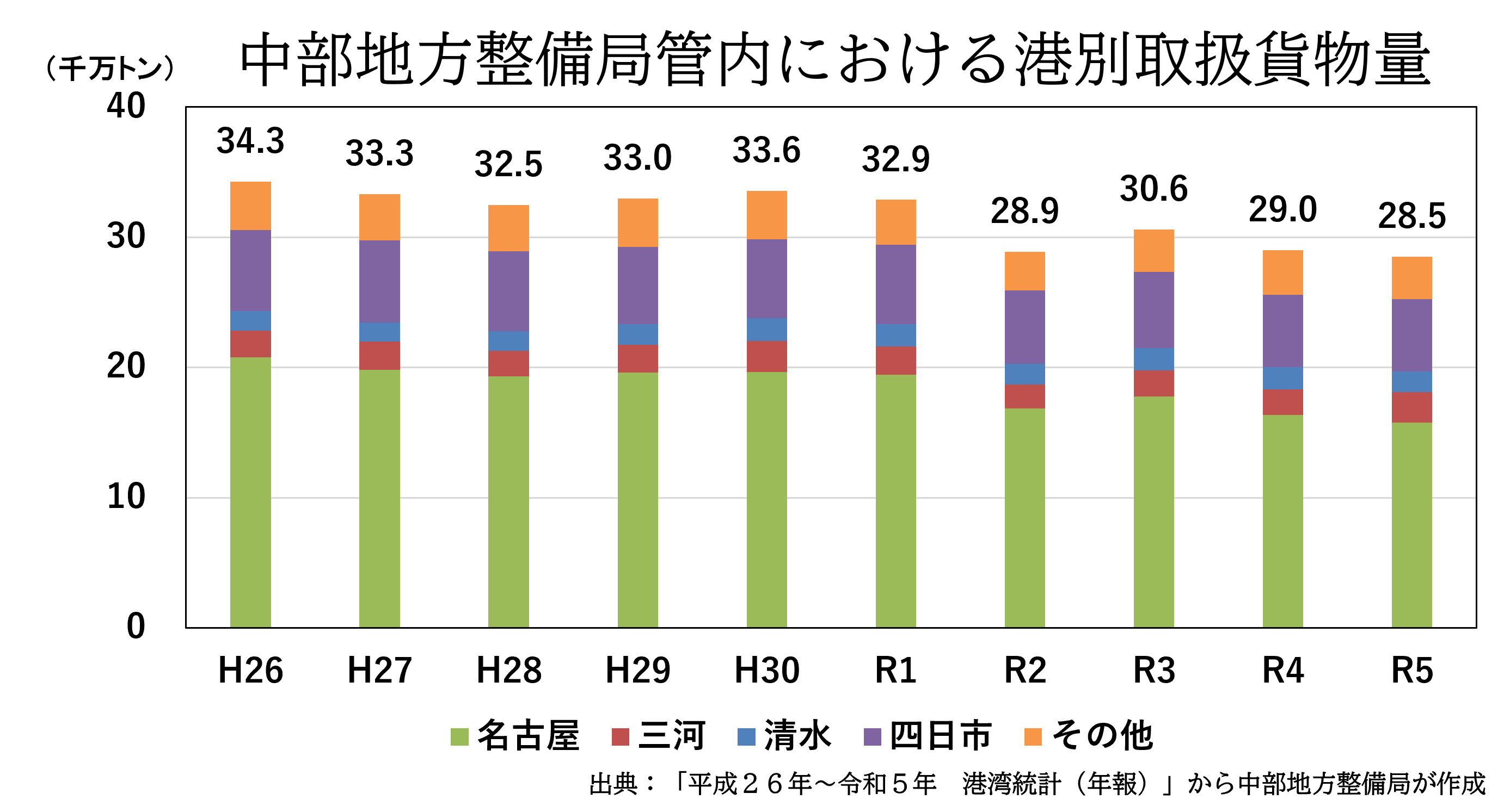 ・中部管内の取扱貨物量は、3億トン程度で推移している。